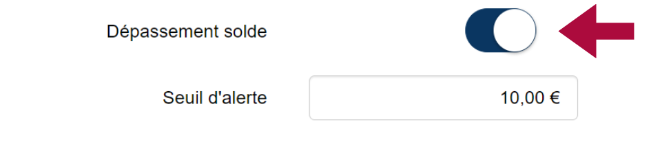Vous pouvez également programmer un seuil d'alerte. Un mail vous sera alors envoyé pour vous avertir que votre compte a dépassé votre seuil d'alerte.