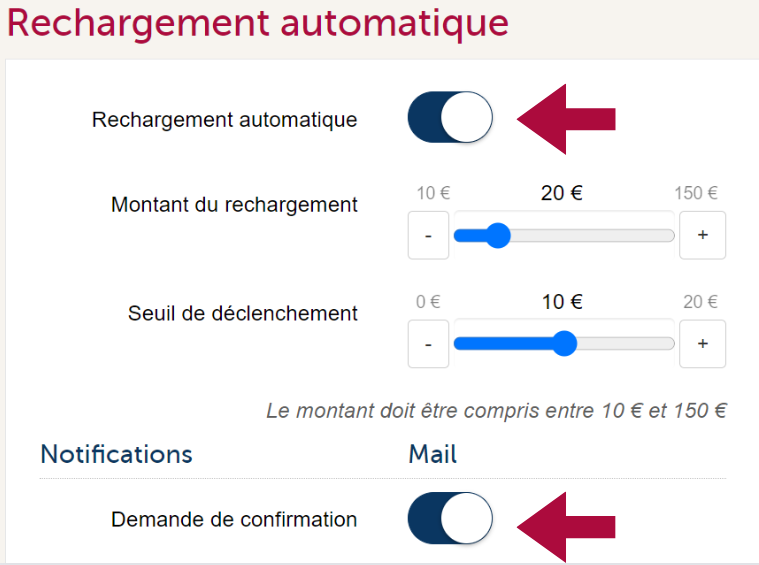Pour votre confort, nous vous recommandons de programmer un rechargement automatique depuis le portail dans la rubrique Profil.